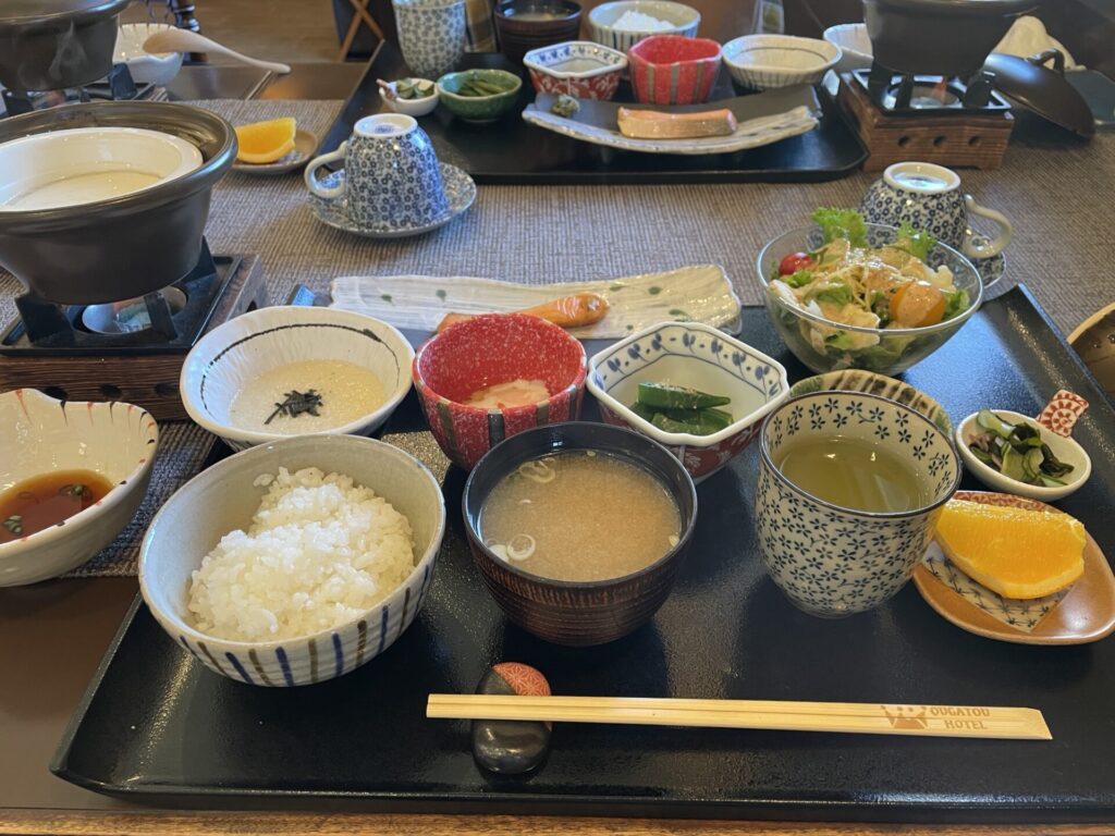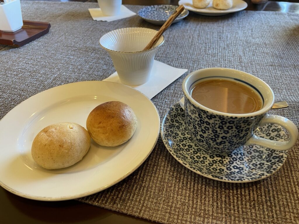 朝は和食だけど、最後にコーヒーと ヨーグルトと パンが出てきます。