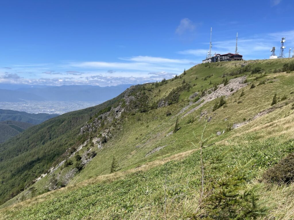 山本小屋ふる里館から 王ヶ頭ホテルまでの道のりには、美ヶ原牧場が広がっています。夏季は広〜い草原に牛が放牧されています。牧場を眺めながらバスに揺られて(道がボコボコなのでホントに揺られる)10分くらいでホテルに到着です。