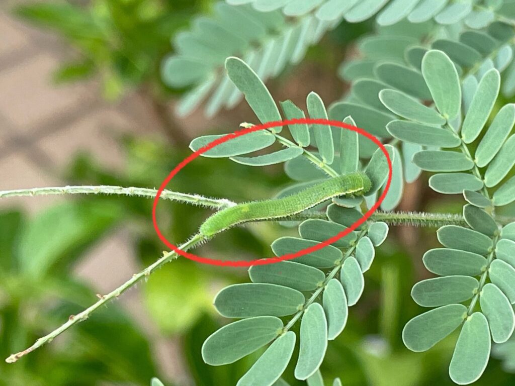 『ミモザは豆科ですねー それならモンキチョウの幼虫で間違えないですねー』こんな感じな。