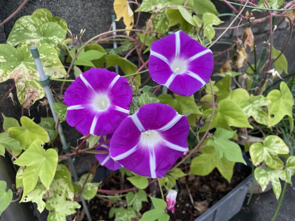 涼しくなってきてアサガオがまたたくさん咲き始めています