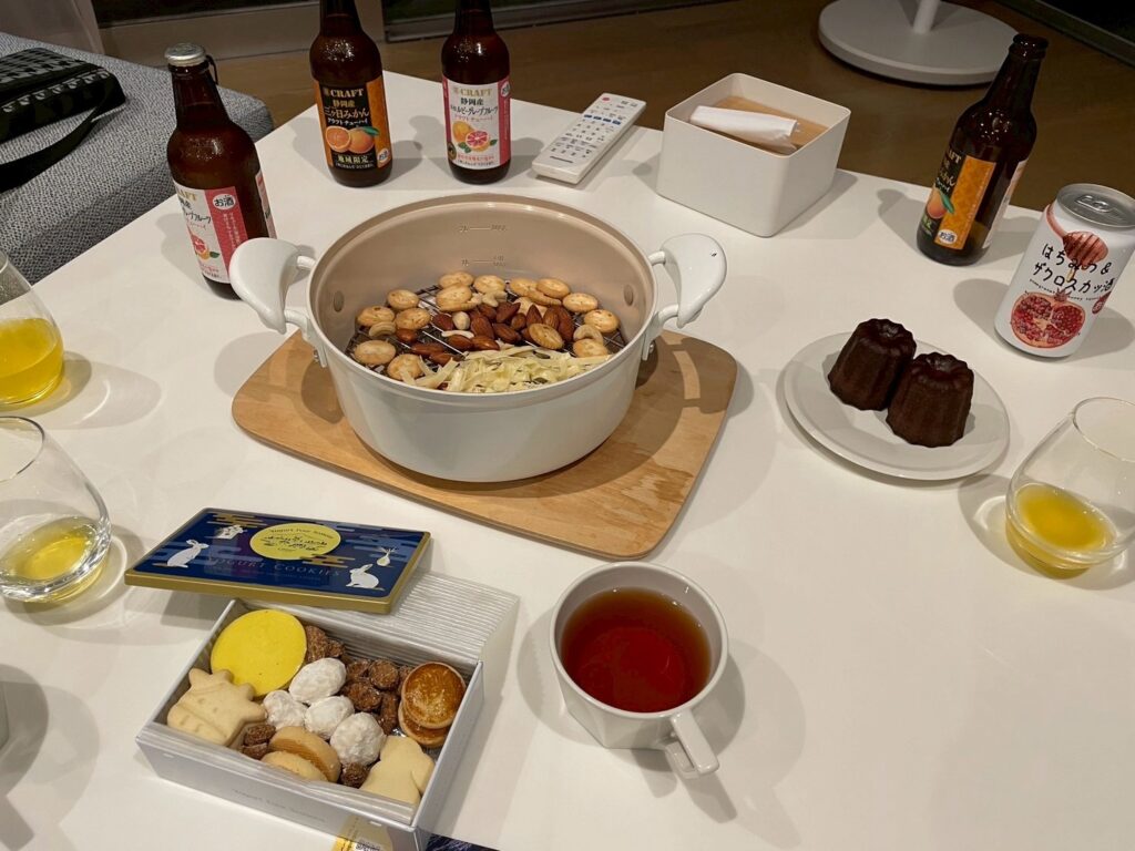用意してあったのは、さきいか(チーズ入り)、クラッカー、アーモンド、カシューナッツ。