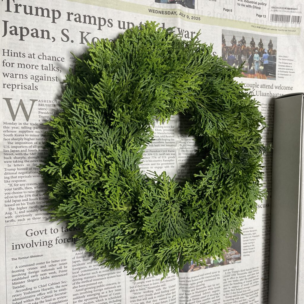 去年、ぐるっと一周フレッシュグリーンのリースを作ってみてからこれが1番のお気に入り。なので、今年もリースはこれに決定!