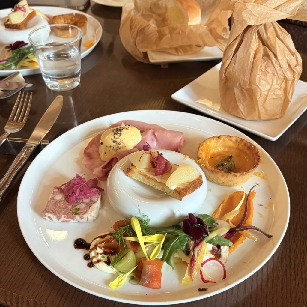 美術館とのコラボメニューもありましたが、私たちは、通常のランチプレートを選びました。(紙で包んであるのはパン。プラス500円でデザートも付いてきます)