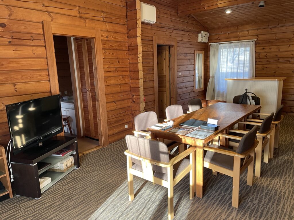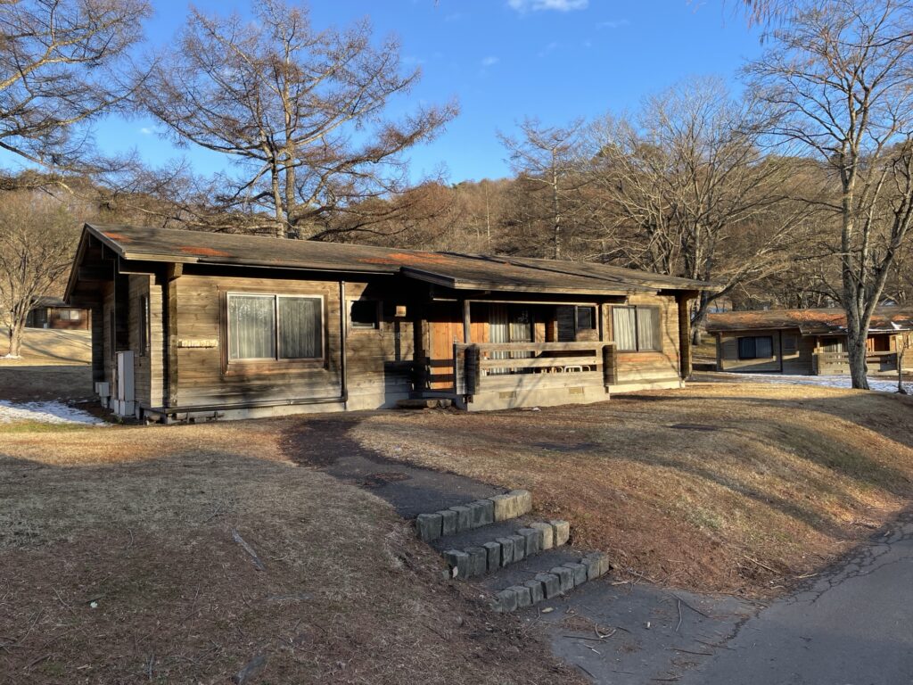 今回宿泊したコテージはこんな感じ。ちょっと古いけどのんびりできます。