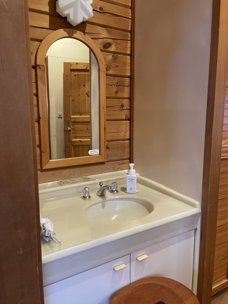 ちょっと残念なのは電子レンジが無いこと。電気ポットと冷蔵庫はありました。(2日目のスキー教室の時間が早かったので、コンビニで朝ごはんを買っておいて食べたのですが…電子レンジあったら選択肢が広がるでしょう?)