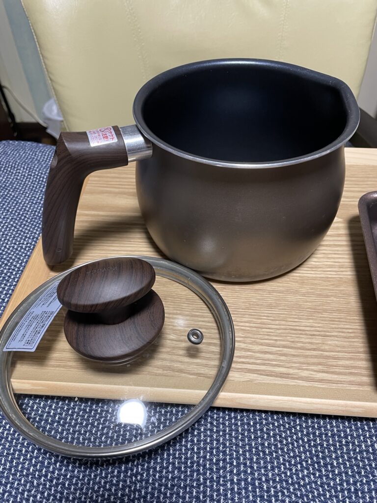 使ってみて便利だなって思ったのは、普通の片手鍋よりよダンゼン持ちやすい(中身が軽く感じる)ところ。持ち手のカタチが違うだけで簡単に持ち上げることができます。気がついた人天才!