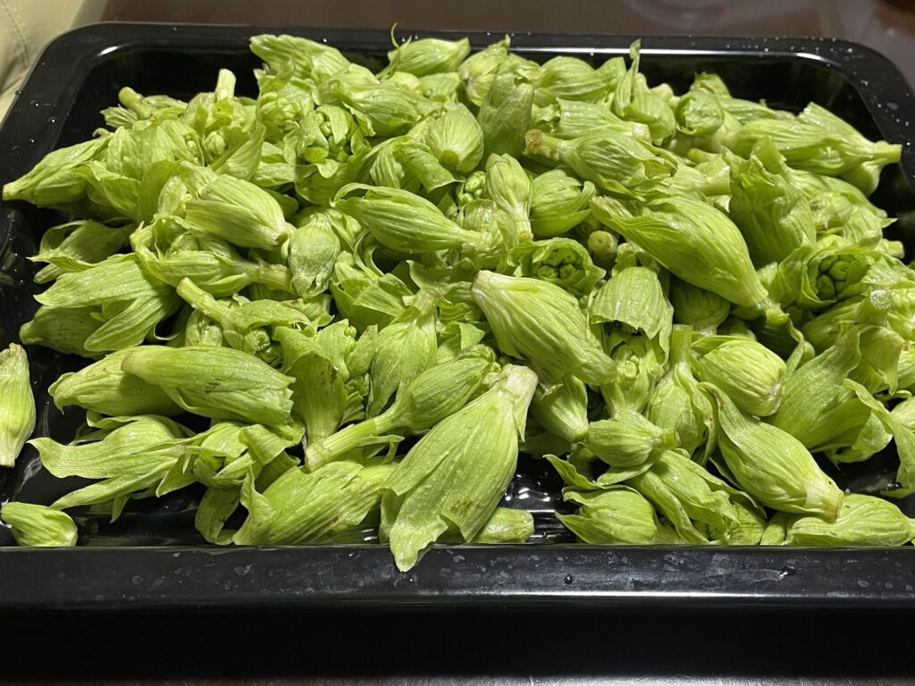 毎年、落ち葉だらけのふきのとうをビニール袋に入れて持って帰ってくるので、落ち葉を取り除いたり黒くなった葉を取り除いたりするのにひと苦労。