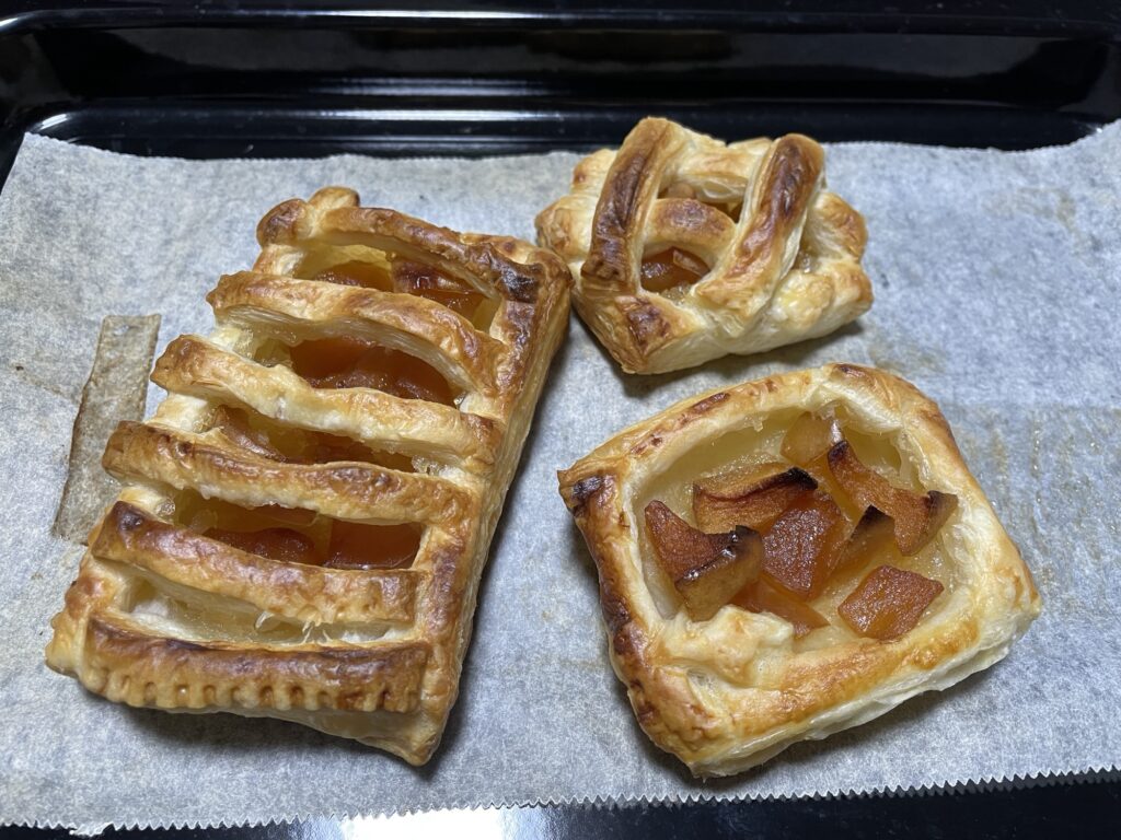 もう1つ。冷凍のパイシートの上に 煮たリンゴを乗せて(リンゴを煮たりするのは先生が事前に用意)好きなカタチのアップルパイを作るのも計画中。